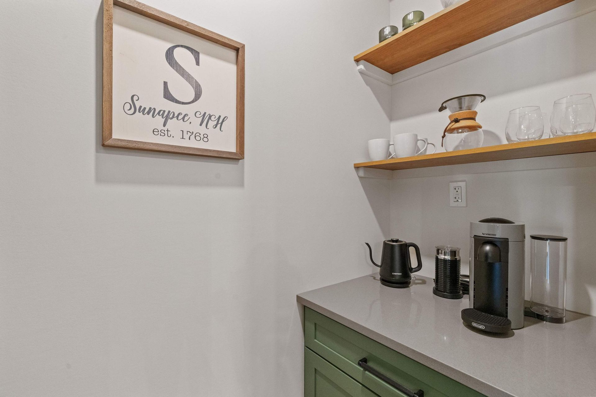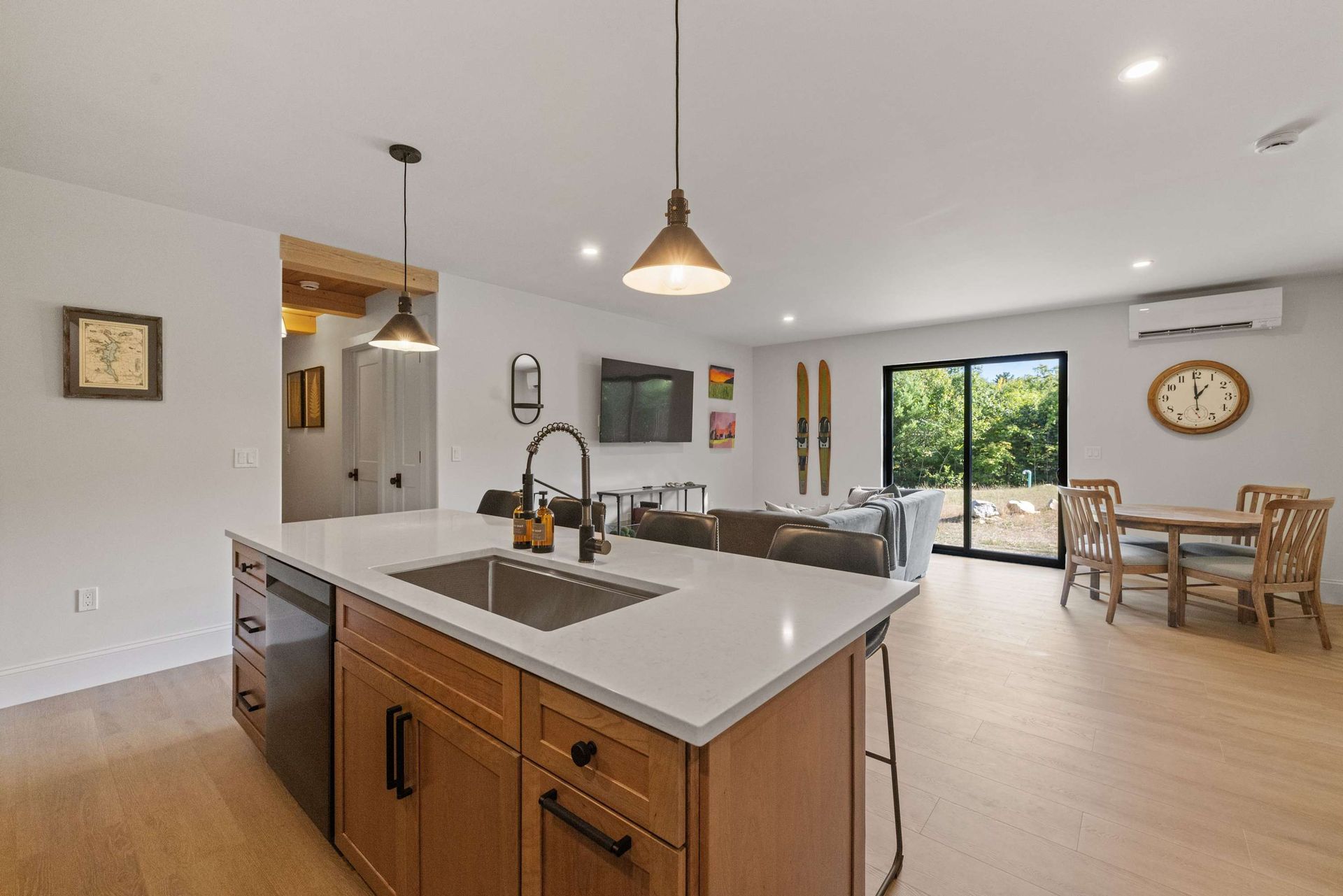 Modern Flat New Construction Feels Like The Home You Want To Build- Italian Style Arches, Kitchen Plus Full Pantry w/ Coffee Station & Microwave Nicely Tucked Away. Sloped Hood Vent Makes The Kitchen with Inviting Pops of Color and Styled Like A Hotel Suite Throughout. 4 Season Get Away Nestled in Lake Sunapee State Beach Neighborhood off Baypoint Rd. Immaculate 2 Bedroom, 1 Bath One Level Flat Tucked Inside A Larger Main Level Home. Appointed with Duel King Bedrooms, Well Laid Out Closets w/ Plenty of Storage. The Details Don't Stop with Wood Ceilings & Beams. High Ceilings Just Under 9' Plus A Nice View Of Mt Sunapee Out your 7' Tall Slider. w/ Firepit Seating for 4. Walk or Short Drive To Lake Sunapee State Beach & Park. 5 Minutes to Vail Resorts Mount Sunapee For Year Round Fun On The Mountain! Close to Sunapee Harbor, Not Far From New London & Easy Access to RT89. Sleeps Max of 4.